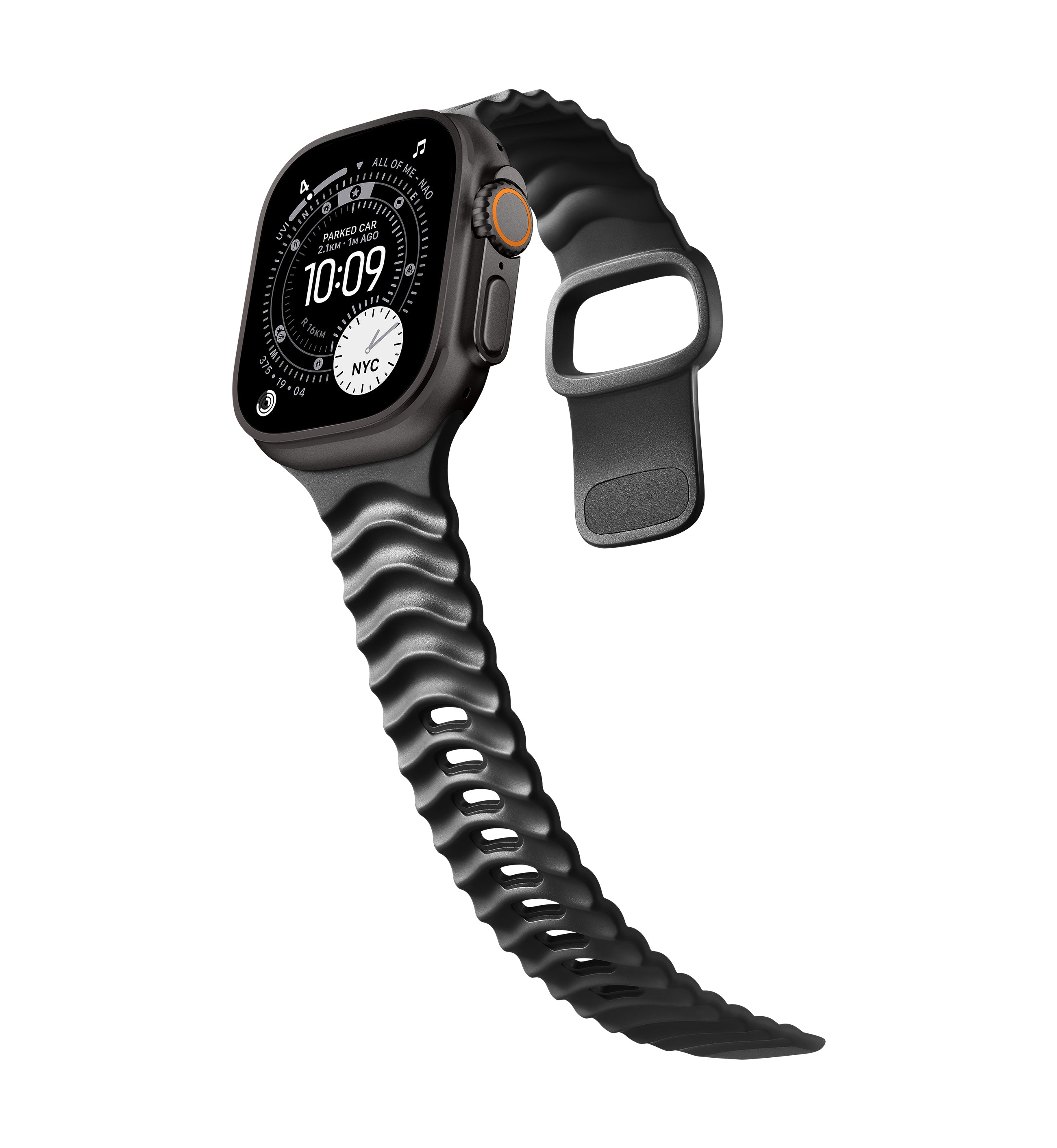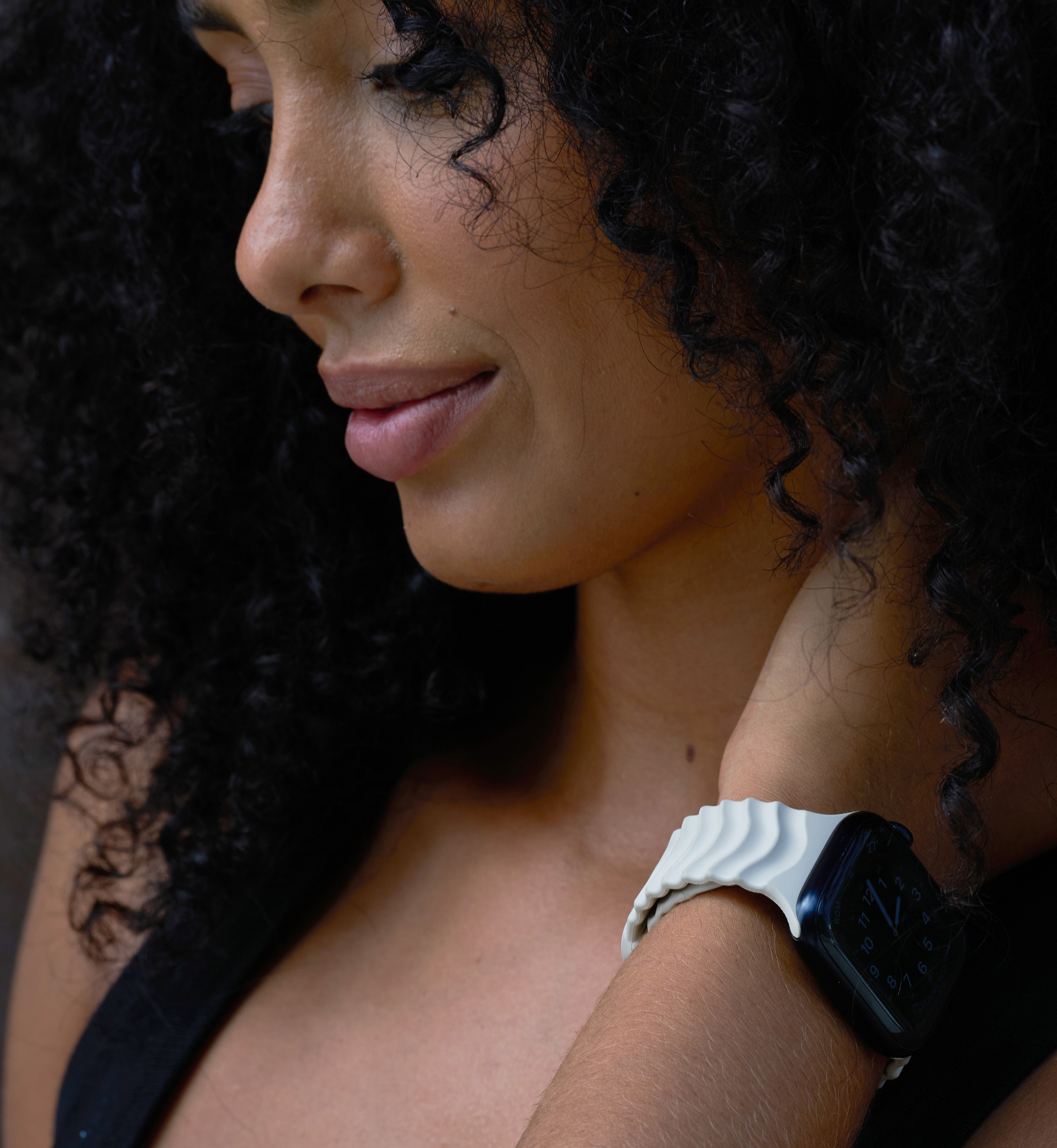 the sculpted wave structure is precision-designed to naturally contour to your wrist, delivering a secure yet effortless fit. strategic airflow channels guide sweat away from your skin, helping it evaporate quickly so the band won’t trap moisture or stick. stay cooler, drier, and more comfortable — during intense training and everyday activity.